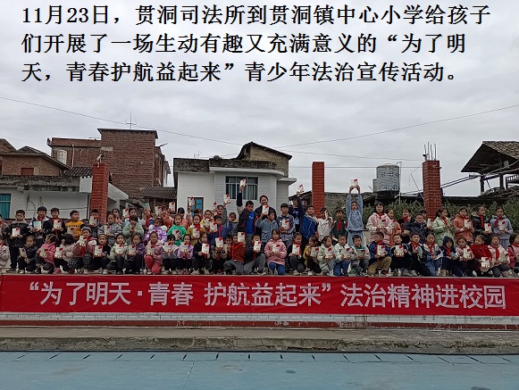 贯洞司法所:11月23日,贯洞司法所到贯洞镇中心小学给孩子们开展了一场生动有趣又充满意义的“为了明天,青春护航益起来”青少年法治宣传活动。活动课上生动有趣,同学们与所长积极互动,对于吴所长的提问,同学们都能及时反馈并提出自己的想法,吴所长对同学们提出的问题进行耐心解答,现场气氛十分活跃。