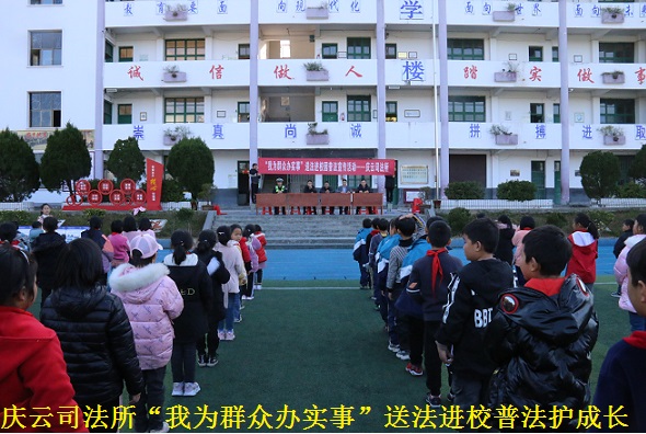 庆云司法所:11月24日,庆云司法所联合派出所、关工委、团委深入庆云中心小学开展“我为群众办实事”送法进校园活动,为该校500余名师生上了一堂生动的法治课,受到师生一致好评。