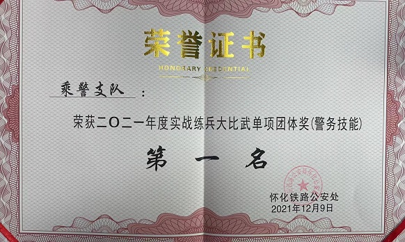 清风网讯(怀化铁路公安处乘警支队:刘燕轻)12月7日至9日,广州铁路公安局怀化公安处在怀化举行“2021年全警实战练兵大比武”活动,怀化乘警支队在此次全警实战练兵大比武中喜获“警务技能”类项目第一名。
