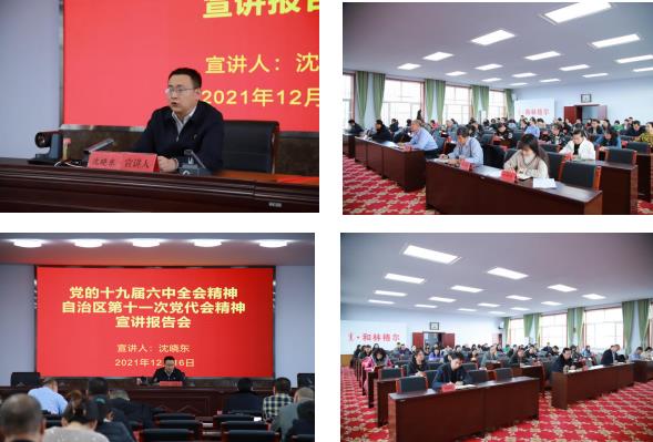 宣讲会上,沈晓东结合自身学习体会,介绍了十九届六中全会内容及意义,以一个根本问题、两个“确立”、三次理论飞跃、四个历史时期和伟大成就、五大历史意义、十个方面宝贵经验为切入点,通过阐释自治区第十一次党代会精神推动党的十九届六中全会精神在全县落地生根,对党的十九届六中全会精神进行系统宣讲和深入解读,为大家作了一场主题鲜明、内涵丰富、精彩生动的辅导报告。