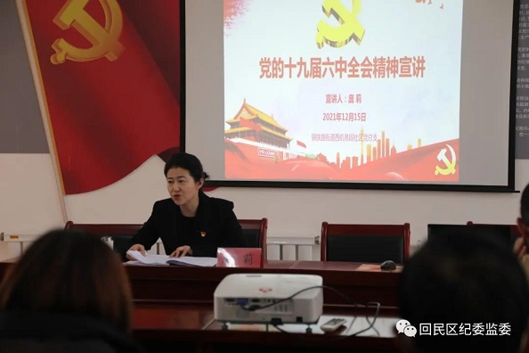 12月15日下午,回民区委常委、纪委书记、监委代主任庞莉深入西机务段社区宣讲党的十九届六中全会、自治区第十一次党代会精神。钢铁路街道党工委机关支部部分党员、西机务段社区全体干部、党员参加学习。