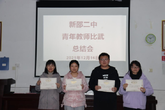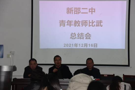 清风网讯 (特约记者;钟鹏 / 通讯员:唐友元 、阳书嘉) 为了促进青年教师快速成长,提高教育教学水平,湖南省新邵县第二中学于12月14日至15日举行了2021年下半年青年教师教学比武活动。此次活动共有20名青年教师参加,设一等奖4个,二等奖7个。16日晚上,学校召开了教学比武总结会议,对参赛课进行了点评,对获奖教师进行了表彰。