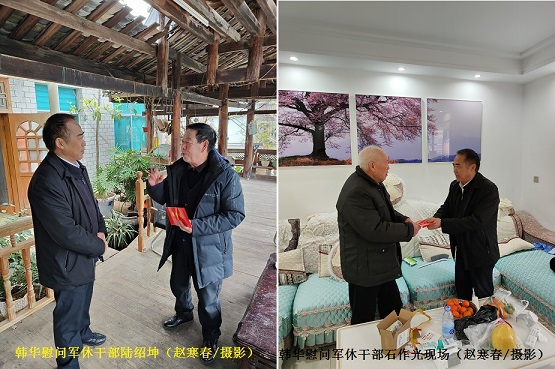 清风网讯(从江县退役军人事务局:鲁畅、陆华超)12月30日,在2022年元旦节即将到来之际,黔东南州委退役军人事务工作领导小组办公室主任、州退役军人事务局党组书记、局长韩华一行,带着对军休干部的牵挂和关怀,深入到从江军队离退休干部陆绍坤、石作光家中进行走访慰问,为他们送去党和政府的关怀和温暖,提前送上新春佳节的问候和美好的祝福。从江县退役军人事务局副局长陈家利陪同。
