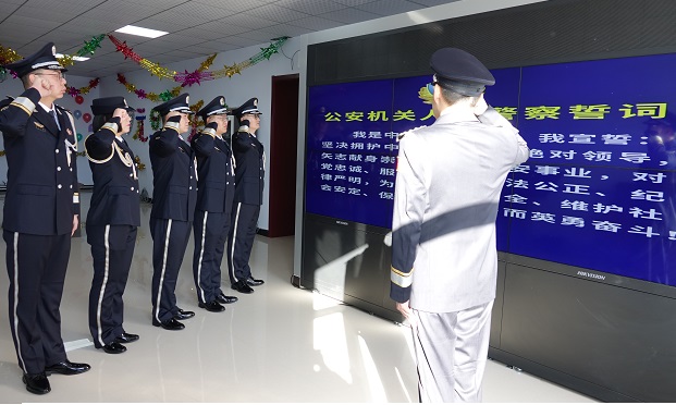 一阵阵铿锵有力的声音在空气中飘荡。“我是中国人民警察,我宣誓:我坚决拥护中国共产党的绝对领导……”这是锡林浩特铁路公安处多伦车站派出所民警们整齐列队,庄严宣誓,始终不忘入警初心。