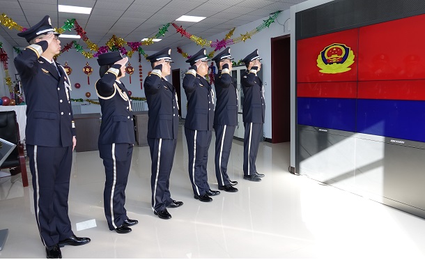 警旗代表着人民警察的荣誉,激励着全体民警牢记自己的职责使命,忠诚履职。全体民警向中国人民警察警旗敬礼!