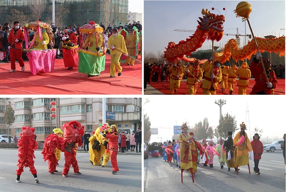 伴随着锣鼓声的节拍,舞长龙、舞狮、麦西来普、扭秧歌、踩高跷、花篮旱船等民间民俗节目竞相上演,社火表演队员们身着盛装,用社火表演给全团职工群众拜年,庆贺即将到来的新春佳节。