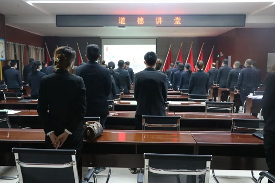 此次道德讲堂活动分为“唱歌曲、学模范、诵经典、谈感悟、送吉祥”五个环节。一首《诚信中国》拉开了道德讲堂的帷幕,“诚信为本,土能生金”,全体干警畅游诚信的世界中。在学模范环节,大家一起观看了坚守诚信替亡子还债的陈月英老人先进事迹,“我儿子欠的钱,我帮着还钱是天经地义的事情”,这句朴实的话语,敲动着现场所有人的心,老奶奶用7年时间还清3192元欠款,这份执着和诚信值得我们所有干警一起学习。随后,在于江涛同志和张娟同志的领读下,大家一起学习了《一诺千金》《曾子杀猪》两则诚信小故事和名言警句,同时也教育着我们以诚心待人、以诚心观己。临近新春佳节,主持人为全院干警送上祝福的“爱心”小礼物,在希望大家书写诚信赞歌时不忘更好发扬中华民族优良传统。