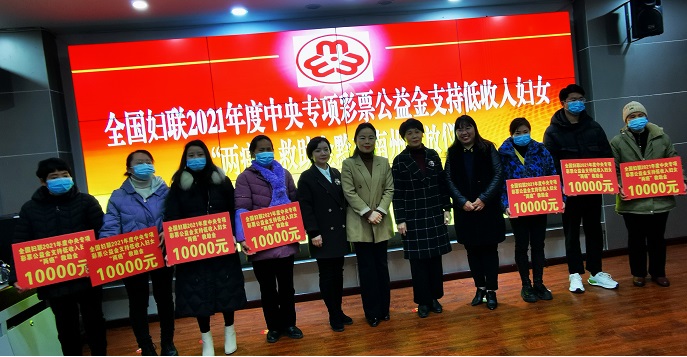 县妇联主席梁银丽主持发放仪式详细介绍了低收入妇女“两癌”救助金的申报、审批流程和2021年实施“两癌”救助工作开展情况,县人大常委会副主任李大琼出席仪式并讲话。李大琼指出,全国妇联中央专项彩票公益金支持低收入妇女“两癌”救助项目是党和政府关爱农村贫困妇女的一项民生工程,旨在为低收入妇女“两癌”治疗提供帮助,减轻患者家庭经济负担,缓解妇女因病致贫返贫,助力巩固脱贫攻坚成果,是妇联组织充分发挥党联系妇女群众的桥梁和纽带作用的具体体现。希望我县妇女儿童工作委员会成员单位及各部门要以此次活动为契机,立足党政所急、群众所想、妇女所需,积极参与到低收入妇女“两癌”救助行动中,在全社会形成关心、关爱“两癌”患病妇女的浓厚氛围,成为低收入“两癌”妇女缓解治病压力、改善生存环境、提高生活质量的有效途径。今后全县各级妇联组织要切实把提高妇女健康水平作为一项重要工作来抓好抓实,充分发挥好妇联组织“引领、联系、服务”广大妇女群众的桥梁纽带作用,主动作为,将更多的低收入群体纳入到救助行列,减轻患病妇女家庭经济负担,为巩固拓展脱贫攻坚成果,助力乡村振兴贡献巾帼力量。