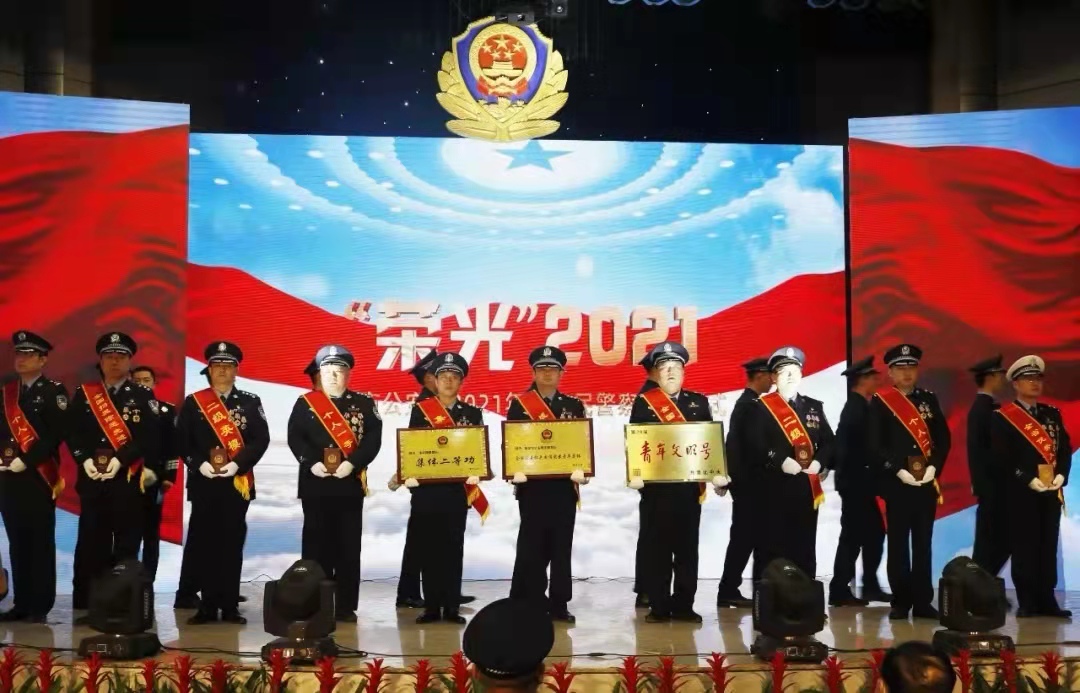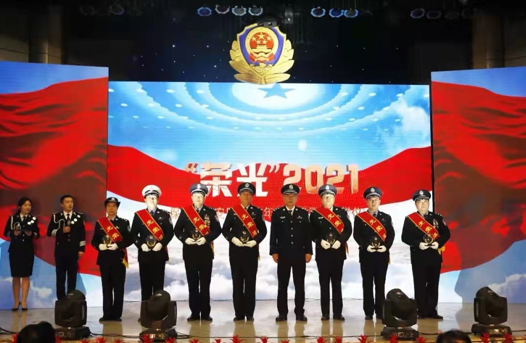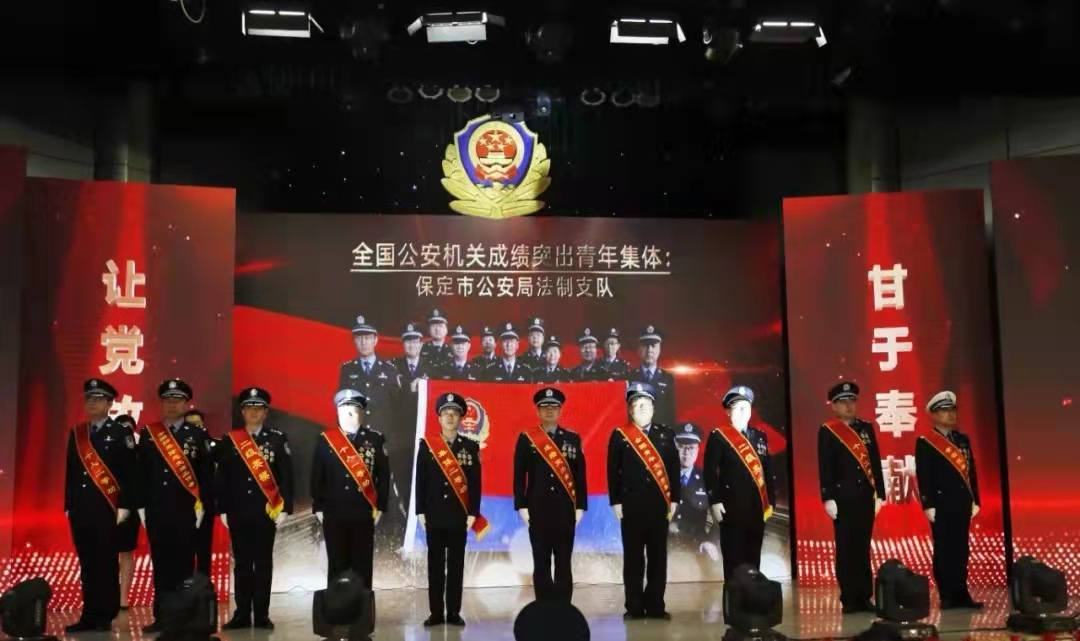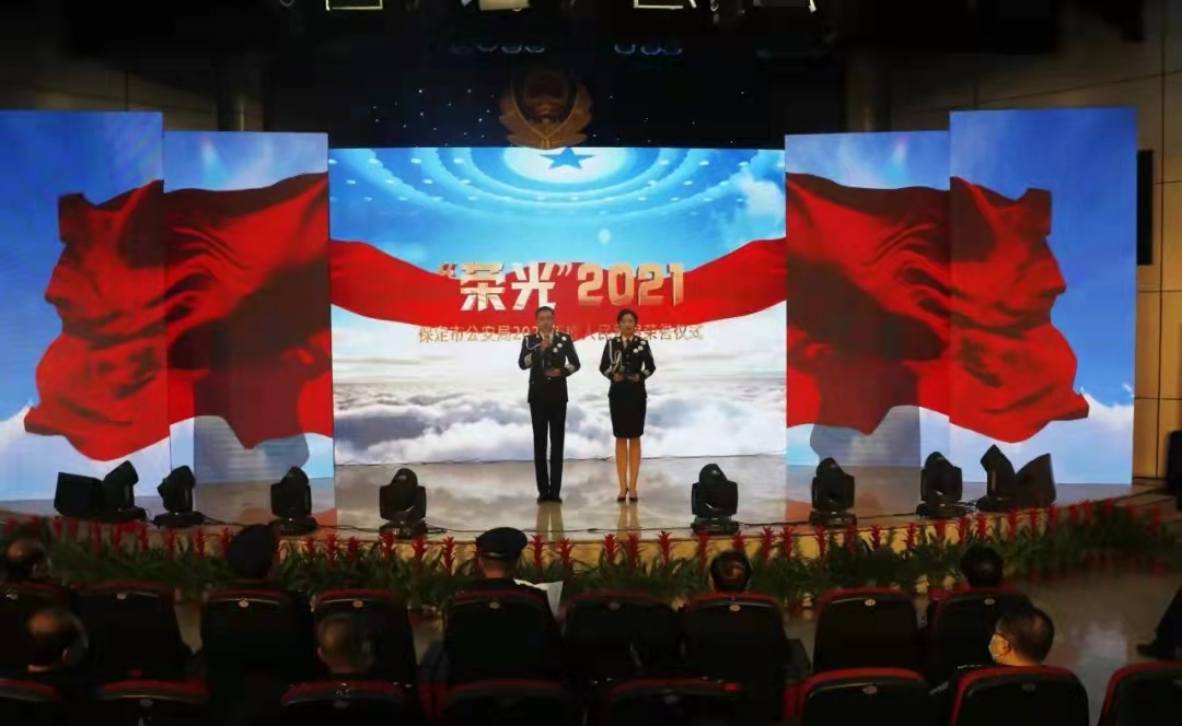 李栋梁同志为立功受奖集体和个人代表颁发了奖章和证书。民警代表演唱了原创歌曲《忠诚》,诠释了迎难而上、忠诚担当的保定公安精神。在“传承”环节,新招录民警代表进行了入警宣誓,于英杰同志为他们颁发了警衔,激励新警要传承和发扬保定公安事业的无尚光荣和优良传统。