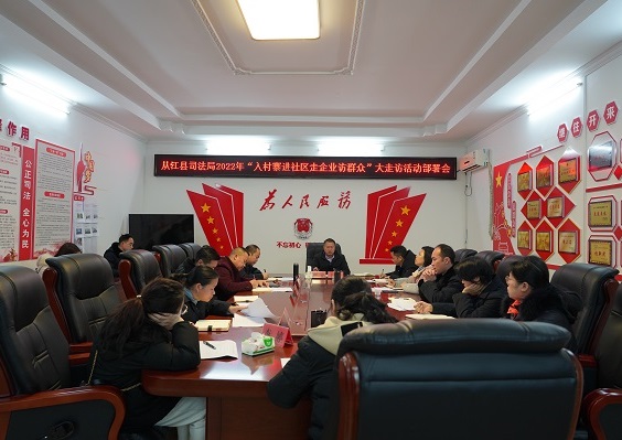 清风网讯(从江县司法局:梁晋武)根据州委政法委印发《全州政法信访系统 2022 年“入村寨进社区走企业访群众”大走访活动方案》(黔东政法通〔2022〕2 号)文件要求,1月24日上午从江县司法局召开2022年“入村寨进社区走企业访群众”大走访工作部署会,会议由党组书记、局长严铭同志主持,机关全体干部职工参加会议。
