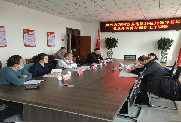清风网讯(教科局:玛依拉·艾沙)1月28日,地区科技局党组副书记、局长卡哈尔·热合曼同志带队赴我县调研科技项目、科研资源与科技创新能力。阿瓦提县人民政府副县长贺建、教科局局长帕坦木·卡迪尔、科技项目服务中心主任李刚陪同调研。