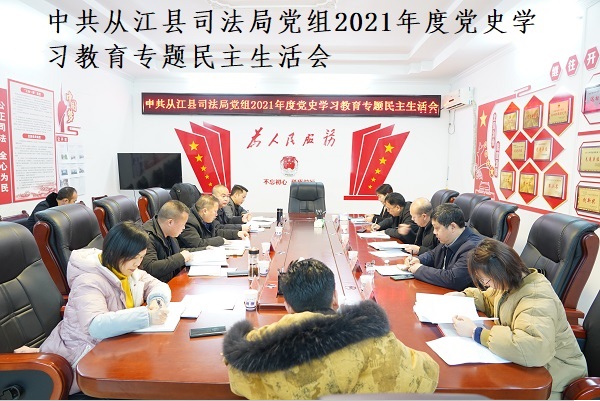 清风网讯(从江县司法局:吴庆)2022年1月27日上午,从江县司法局召开2021年度党史学习教育专题民主生活会。会议由党组书记、局长严铭同志主持,班子成员及机关股室负责人参加会议,会议邀请县委第七指导组长陈岗、成员马社忠、县委政法委副书记韩青林到会指导。