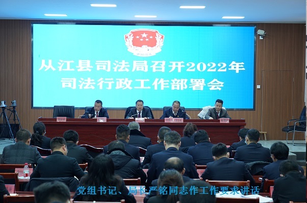 清风网讯(从江县司法局:梁晋武)2022年2月7日下午,我局在局机关一楼会议室召开全线司法行政工作会议,总结2021司法行政工作及部署下一阶段工作任务。局班子成员、局机关全体人员及司法所所长参加了会议。会议由局党组成员、副局长张立权主持,党组书记、局长严铭作讲话。