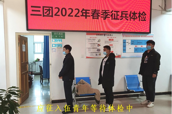 为做好三团2022年春季征兵体检工作,为国家输送合格兵员,三团医院挑选技能过硬、严格负责的医务人员组成征兵体检小组,为该团应征入伍青年进行体检。