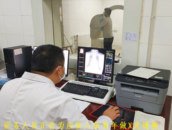 本次体检内容包括血常规、肝功、肾功、尿常规、B超、心电、X光透视、血压、听力、视力、嗅觉、身高、体重等检查内容,全面检测应征入伍青年身体健康状况。检查中,体检小组医生仔细对照应征人员身份信息,认真对其开展各项身体检查,如实填写体检结果,确保体检结果真实有效,严格把好征兵体检关。