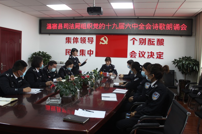为了全面学习宣传贯彻党的十九届六中全会精神,用诗歌讲好红色故事,温宿县司法局于2月16日举办“颂中华民族千秋伟业,歌百年大党风华正茂”十九届六中全会精神主题诗歌朗诵会,通过朗诵向全体司法行政干部传递会议精神,弘扬时代主旋律。