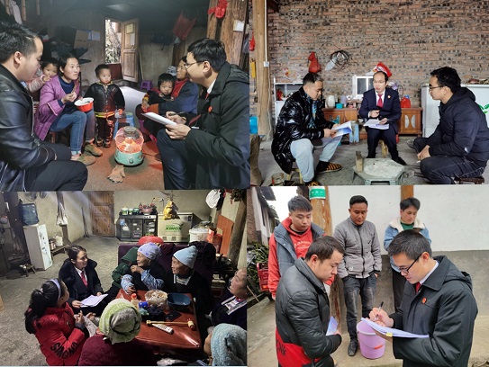 三是强化真走实访。围绕走访对象提前摸排重点企业、学校及人大代表、政协委员、人民陪审员、案件当事人等重点走访名单。对照大走访六个方面工作重点,聚焦问题、问计于民,真心走访、热心走访、专心走访、实地走访。进一步规范走访工作流程,依据流程步骤完成入户走访,确保走访了解情况的真实性、有效性,坚决杜绝走形式、走过场,做到广泛收集问题线索,切实掌握社情民意。截至2月17日派出走访人员75人次,走访村寨(社区)13个,走访群众348户,走访任务完成率为24.86%,收集问题线索、意见建议8条,收集对政法信访工作的评价期盼2条,帮助解决群众困难1个。