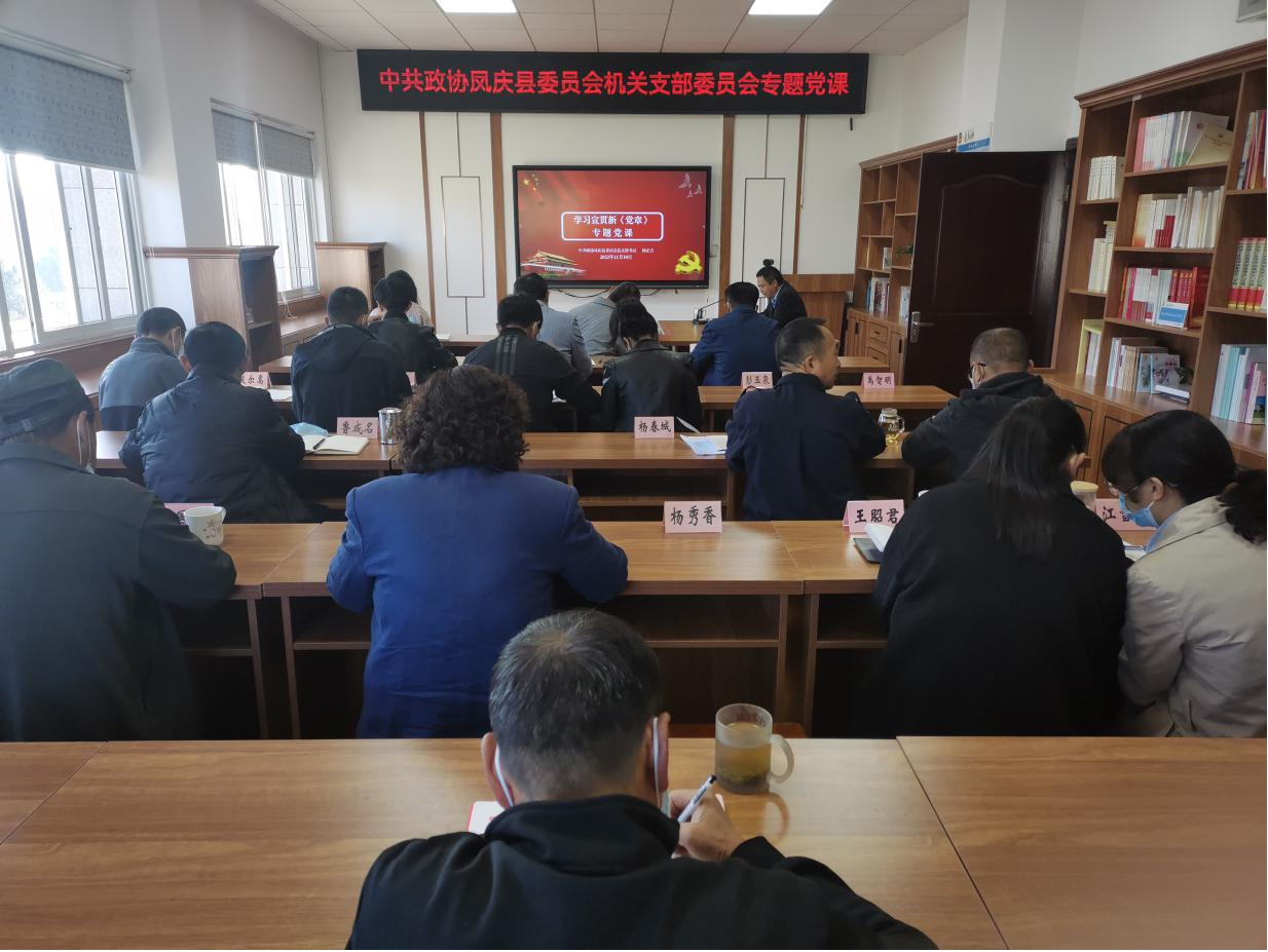 近日,凤庆县政协机关党总支把学习新党章与学习党的二十大精神结合起来,对党的二十大修订的党章进行专题学习。县政协机关全体党员参加了学习。