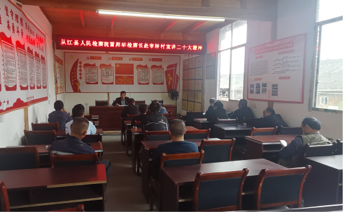近日,从江县人民检察院党组书记、检察长雷邦华深入帮扶村翠里乡宰转村宣讲党的二十大精神,村两委班子及部分党员代表、村民代表20余人参加了宣讲会。