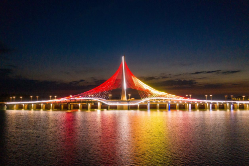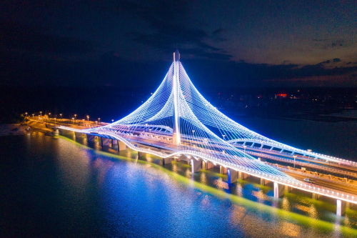 一道靓丽风景展现在海花岛,“小蛮腰”主塔直指海花岛湛蓝的天空,桥塔两边巨大的索网如张开的羽翼,海花岛跨海3号桥像一只海鸥一样翻飞在海面上。通车的3号桥上往来车辆川流不息,桥下海水清澈,附近渔民下海打鱼,每到夜晚,前来观景的人络绎不绝,3号桥已经成为当地居民和游客的新晋网红打卡地。