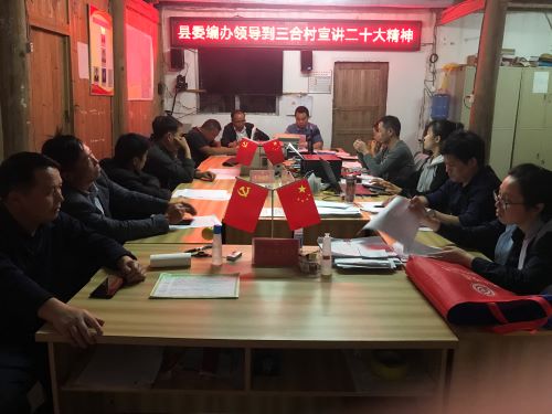 受从江县委宣讲团成员、县委编办主任温莹敏同志委托,县委编办副主任吴学民8日下午率队前往联系帮扶的下江镇三合村,了解该村巩固脱贫攻坚成果后评估和乡村振兴工作情况,走访脱贫户、监测户。晚上集中村组干部、党员群众宣讲党的二十大精神。宣讲中,吴学民同志围绕过去五年的工作和新时代十年的伟大变革、中国式现代化的内涵特征和本质要求、全面建成社会主义现代化强国的宏伟蓝图等方面,结合自己的学习体会,用大家熟悉的案例进行了生动讲解,讲述了包括巩固拓展脱贫攻坚成果衔接乡村振兴等方面取得的大变化大发展,这些成绩的取得,根本在于有习近平同志作为党中央的核心、全党的核心掌舵领航,在于有习近平新时代中国特色社会主义思想科学指引。