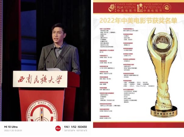 喜报一:11月4日,由美国鹰龙传媒公司主办,中国国务院新闻办公室、中国国家广电总局、中国驻洛杉矶总领事馆、美国洛杉矶郡郡政府共同支持的2022第十八届中美电影节中美电视节开幕式暨“金天使奖”颁奖典礼在美国西岸洛杉矶隆重登场。由杨程成导演、主演的的长篇电影《再见土拨鼠》获得2022年第十八届中美电影节“中华文化国际传播力奖”金天使奖。