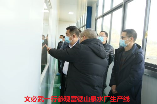 在富锶山泉水厂调研时,文必武一行实地参观了生产车间设备情况,并在座谈会上听取了相关人员关于水厂建设、品牌特色、发展前景、投资详情、预估产值及存在的困难和问题等方面的详细介绍。针对富锶山泉水厂的后期发展,文必武提出,要充分意识到水厂发展存在瓶颈的根源所在,立足自身发展与当地经济带动的双重社会责任,切实转变发展观念,找准山泉水资源开发利用的发展方向,强化品牌意识,研发产品种类,加大营销力度,同时,各相关部门要在工作上给予大力支持,做大做强黄平县水品牌,为地方经济高质量发展作出积极贡献。