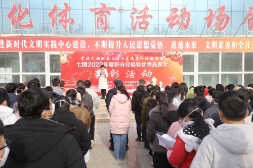 七团党建办副主任阮曦宣读了表彰决定,对活动选出的20名优秀志愿者、4支优秀志愿服务队、1个见义勇为职工进行了表扬,并详细介绍了志愿者积分的获取方式、兑换规则与兑换时间,鼓励职工群众积极参与志愿服务活动。
