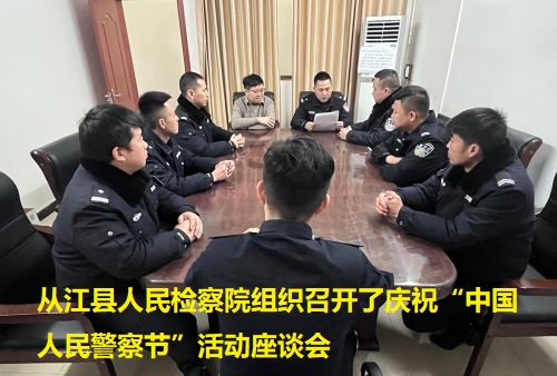 1月10日上午,从江县人民检察院组织召开了庆祝“中国人民警察节”活动座谈会。院党组成员、政治部主任王筑黔参加会议并讲话,院司法警察大队全体干警参加会议。座谈会由院司法警察大队队长袁贵恒主持。