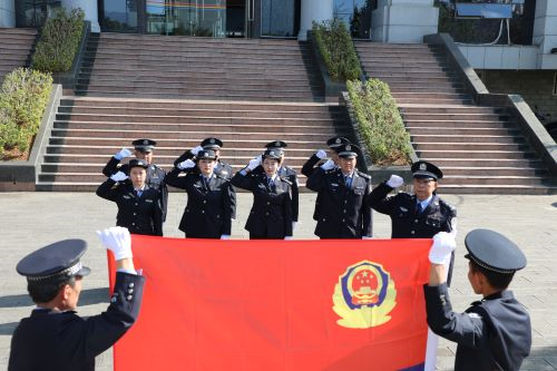 一场宣誓仪式忆初心。全体司法警察警容严整、精神饱满,面向警旗庄严宣誓,誓词字字铿锵有力,句句掷地有声,表达了司法警察对党和人民的无限忠诚和对司法警务事业的无限热爱。