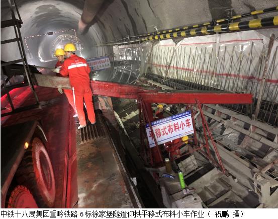 在隧道施工过程中,项目部通过科技智库,创新研发出拱架支垫三件 套、仰拱边墙防排水铺设施工平台、仰拱混凝土浇筑布料系统等多项施工新工艺。如研发的仰拱混凝土浇筑布料系统,实现了混凝土智能分仓分层布料,只需2人就可完成操作,不仅效率提高了2倍,还节省了材料消耗。
