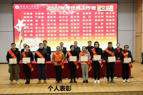 随后,党委书记段立文宣读《关于对2022 年度优秀团队等集体和个人进行表彰的决定》,激励全院干部职工以受表彰集体和个人为榜样,笃行不怠、扎实工作,不断提高医疗服务能力,为守护人民群众生命健康作出新的贡献。与会院领导分别对2022年先进集体和个人进行颁奖。