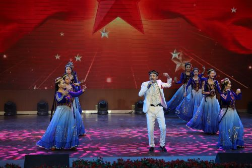 九团党委班子成员同九团、托喀依乡、管委会的职工群众代表及劳模、优秀党员、优秀企业家代表现场观看了演出。
