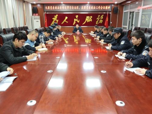 1月31日,九团梨花镇党委政法委召开专题会议,迅速传达自治区、兵团党委政法工作会议精神,团镇党委政法委书记李浩明主持会议,并就贯彻落实会议精神进行安排部署。团镇社综办、综治中心、派出所、司法所20余名人员参加会议。
