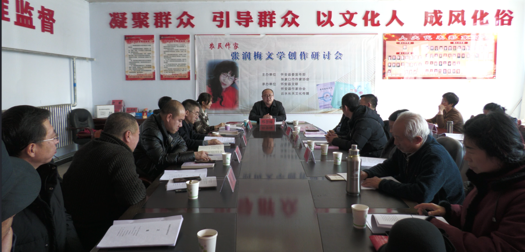 2023年2月25日,由河北省张家口市怀安县委宣传部、张家口市作协主办,怀安县文联、怀安城镇政府、怀安县作协、云水长天文化传媒承办的农民作家张润梅文学创作研讨会在怀安城镇举办。县委常委、宣传部长邢慧臻,市文联、市作协、县文联、县作协相关负责人和作家出席活动。