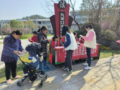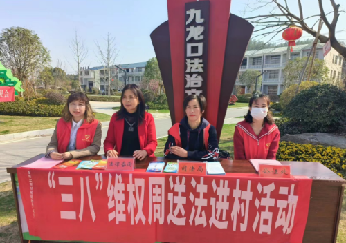 3月6日上午,由英山县司法局相关股室工作人员以及公证员、律师、法律工作者组成的巾帼普法志愿服务队走进九龙口法治公园,开展“三八维权周送法进村”普法宣传活动。