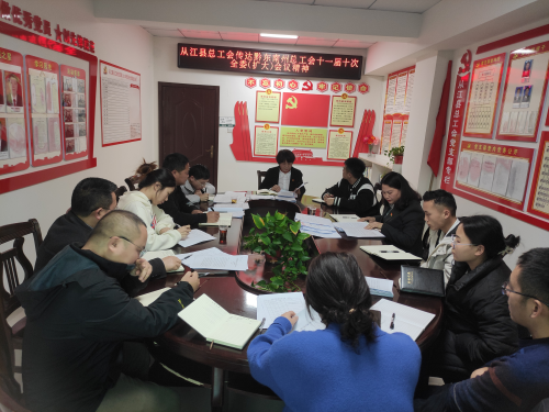 3月7日,从江县总工会召开全体人员会议,传达黔东南州总工会十一届十次全委(扩大)会议精神,县人大常委会副主任、总工会主席李大琼主持会议并讲话。