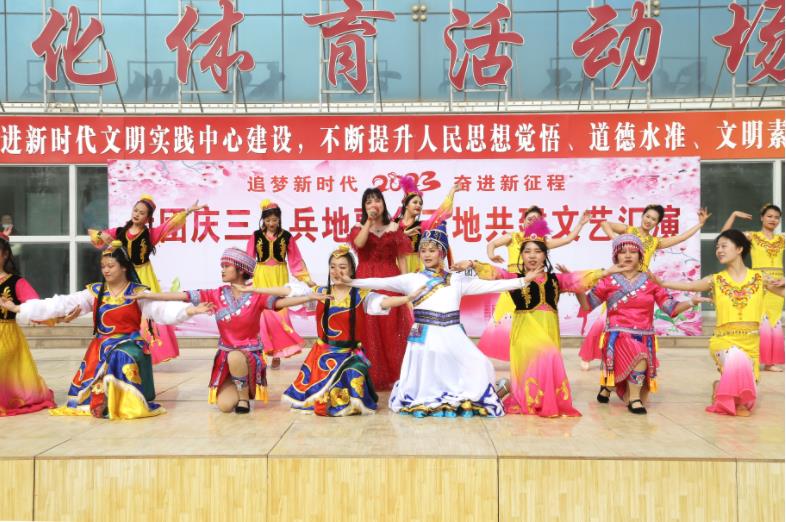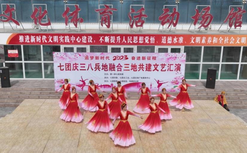 为迎接第113个“三八”国际妇女节,共同庆贺这个属于妇女们的节日,深化民族团结,促进各族妇女群众交往交流交融。近日,新疆生产建设兵团第一师阿拉尔市七团以“追梦新时代、奋进新征程”为主题,与毗邻的阿克苏市喀拉塔勒镇、阿瓦提县巴格托格拉克乡联合开展了“庆三八”兵地融合文艺汇演活动,丰富了各族群众的精神文化生活,营造了“中华民族一家亲、同心共筑中国梦”的浓厚氛围。