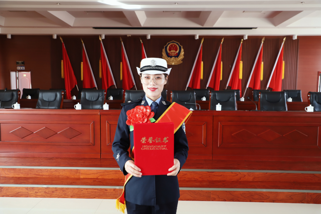 方珺今天“喜上眉头”,她说:“戴上大红花站在领奖台的那一刻,激动到表情僵硬,心里笑着,脸上却表达不出来那份真实的喜悦,感谢领导,感谢同事们,感谢这身藏青蓝。奋进新征程,巾帼绽芳华,我作为公安战线的一员,将认真履行好岗位职责,把民警的声音“带”上来,把巾帼豪情“传”下去,坚定理想信念,强化责任担当,弘扬实干精神,提升实战本领,在交通安全宣传工作中发挥女警的独特优势,为全县交管事业贡献公安巾帼智慧、挥洒公安巾帼汗水、展现公安巾帼风采。”