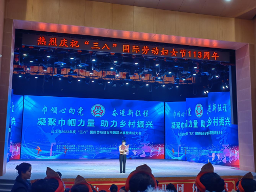为纪念第113个“三八”国际劳动妇女节,使全体女性工会职工度过一个和谐温馨、轻松快乐的“三八”妇女节,县总工会联合县妇联在3月8日下午开展了以“巾帼心向党•奋进新征程 凝聚女性力量•助力乡村振兴”为主题的舞蹈比赛活动,共同迎接三八妇女节的到来,从江县委常委、县委宣传部部长、统战部部长赵灵芝出席活动并讲话。