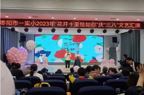3月8日,枣阳市第一实验小学举办“春风十里恰是你”庆“三八”文艺汇演,《舞动中国》《不忘初心》《慧美共育》等10余个歌舞、合唱、朗诵表演,激励大家不忘教育初心,牢记育人使命,在文明、健康、和谐、向上的校园文化氛围中“与你同行!”