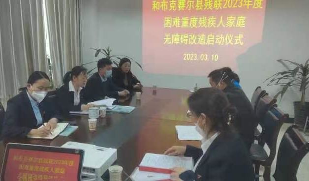 3月10日,和布克赛尔蒙古自治县残疾人联合会组织邀请第三方服务企业在二楼会议室召开了2023年度困难重度残疾人家庭无障碍改造启动仪式。