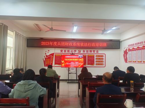 3月21日至3月23日,新疆兵团财政系统依法行政培训班以线上视频授课进行。一师九团财政所、核算中心全体工作人员在机关405会议室参加此次培训。