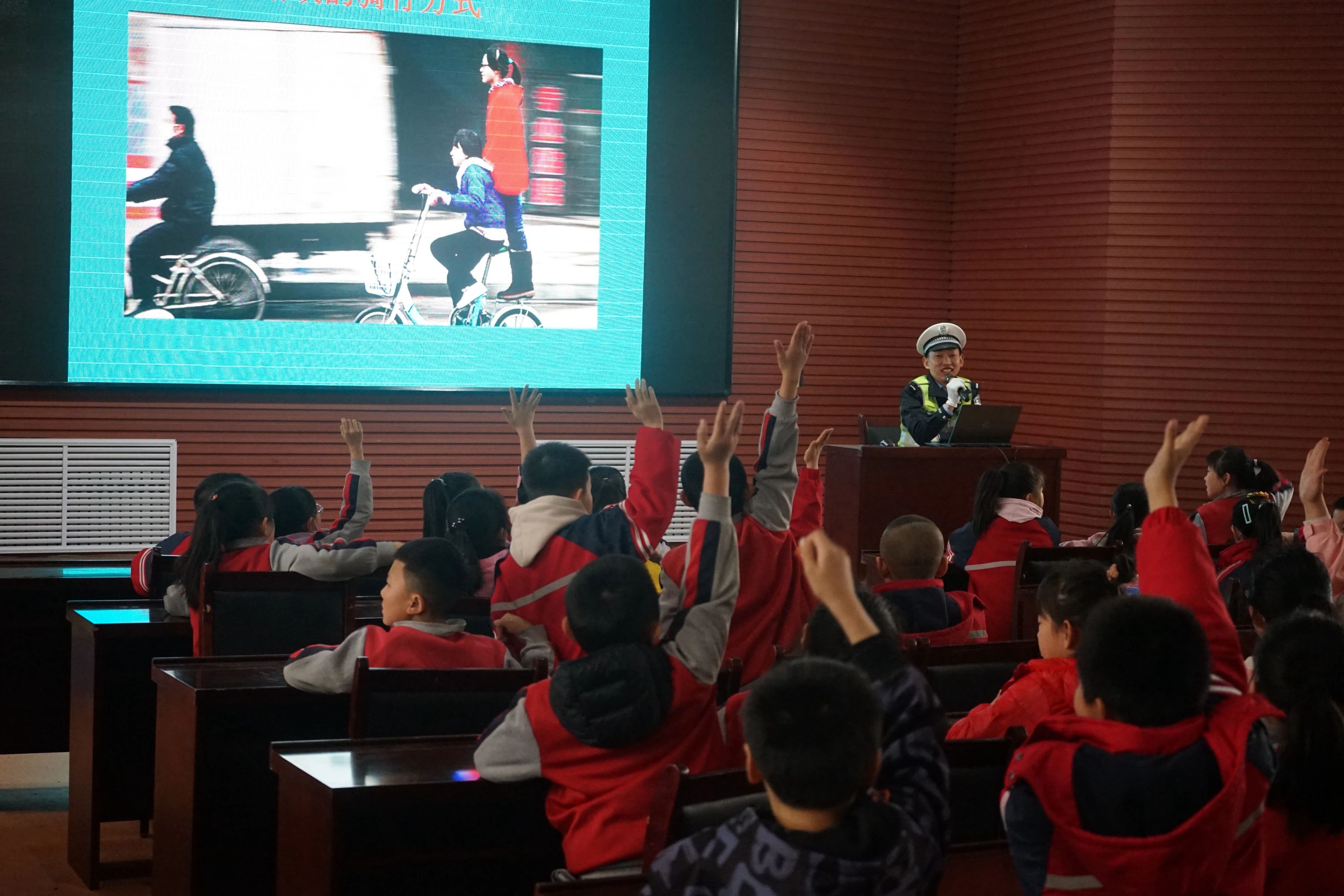 课堂上,民警通过讲解交通安全PPT课件、播放宣传短片、互动问答、发放宣传提示卡、小礼品等方式,调动学生的积极性,激发他们的参与感,民警就小学生的出行特点结合校园周边道路交通环境,用浅显易懂的表达方式,让孩子们知道乘坐车辆、骑行自行车、过马路、高速公路出行注意事项,形象生动地向同学们强调远离交通危险行为,在寓教于乐中培养孩子们的交通安全意识。
