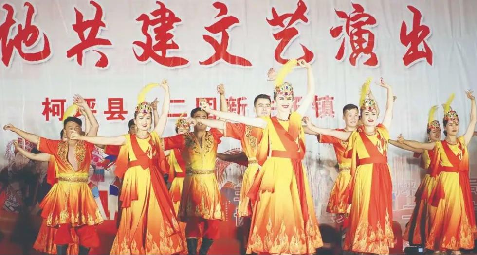 依明江·艾尼所说的成果,看得见、摸得着:在二团新井子镇党委的大力支持下,总投资近千万元的惠民超市、兵地文化融合长廊、兵地融合文化广场、兵地融合大舞台、村民活动中心等项目,现在已成为博斯坦村的标志性建筑,也成为村民最喜欢的去处。