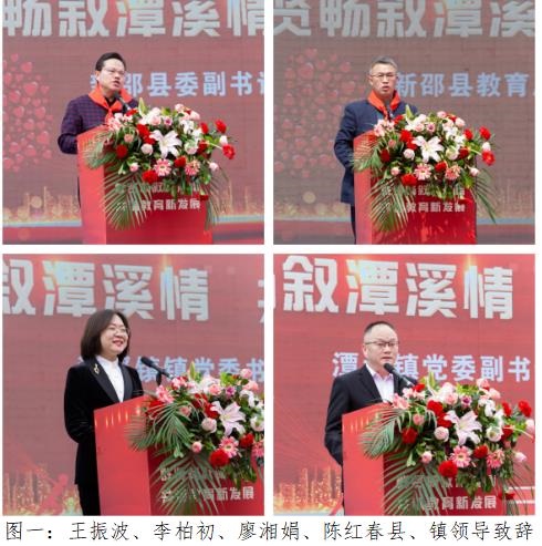 廖湘娟、王振波、李柏初、周继华、周荣达、陈红春等先后致辞,对各位乡亲贤达和爱心人士的到来和善行义举表示热烈的欢迎和诚挚的谢意,对潭溪镇教育事业取得的成绩给予充分肯定,对教育促进会的成立表示衷心的祝贺和良好的祝愿,对广大教师和教育工作者为潭溪教育事业发展作出的贡献表示衷心感谢,对莘莘学子寄予了美好希冀。