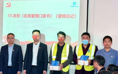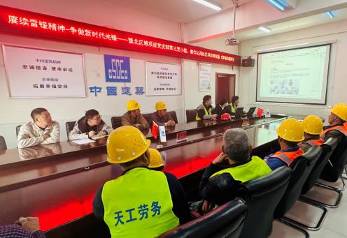 党支部联合所属分公司总部第二党支部在焦作沁苑社区项目部组织7个项目班子成员和关键岗位人员和广大工友20余人全面系统深入学习雷锋生平事迹、重温雷锋精神和探讨传承践行雷锋精神方法;向项目管理人员和广大工友发放《雷锋日记》。豫北区域管理中心经理讲授赓续雷锋精神专题党课,采取集体学的方式推动系统学、深入学,要求7个项目 “领头雁”,持续带头领会、带头宣传、带头践行。