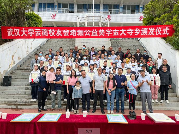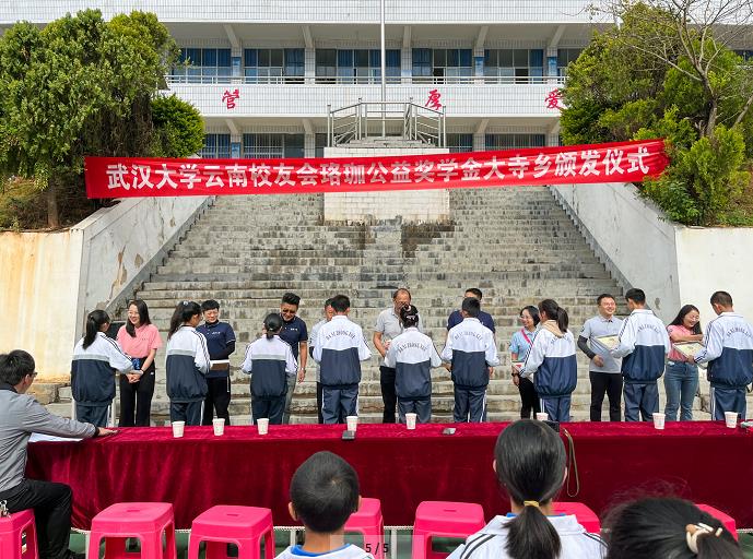 正是樱花绽放的时节,武汉大学云南校友会公益小组的老师们带着浓浓的深情厚谊,为大寺乡的孩子和老师们带来了“春的问候”!4月2日,武汉大学云南校友会珞珈公益奖学金颁发仪式在大寺乡中学举行,来自大寺乡平河中学、大寺中学、大河中学的3名教师和27名学生获得奖励,这也是该奖学金设立后首次颁发。