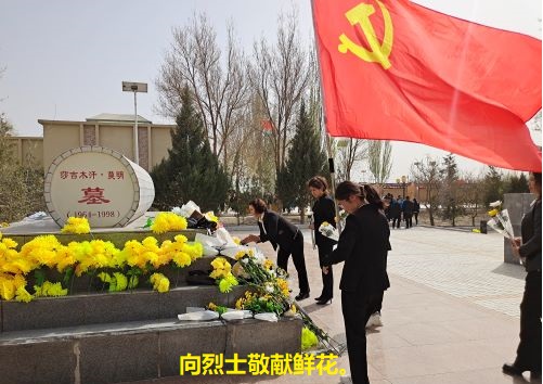 在莎吉木汗·莫明烈士墓前,大家聆听烈士事迹、肃立默哀、行鞠躬礼,共同宣誓:“人民为先,祖国至上,不忘初心,牢记使命;敢于担当,勇于创新,振兴中华,再造辉煌!”随后向烈士敬献鲜花、表达了对革命先烈的无限追悼之情和崇高的敬意。