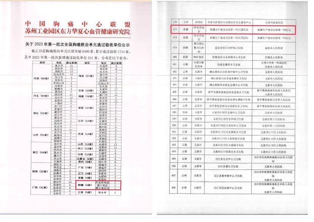 2023年4月3日,国家胸痛中心总部发布重要通知,通报通过2023年第一批次全国胸痛救治单元验收的单位名单。三团医院榜上有名!(第一师三团医院:张青晓)